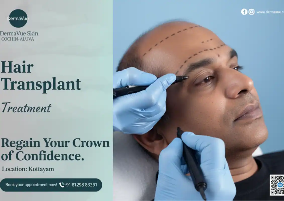 Requirements: stable hair loss, adequate donor density, age typically 25+, no active scalp disease. DermaVue Kottayam evaluates all candidacy factors including trichoscopy at initial consultation.