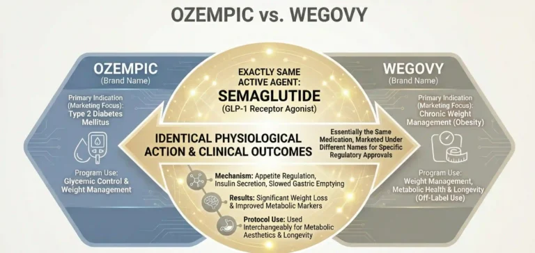 Ozempic and Wegovy are brand names for semaglutide, a GLP-1 receptor agonist manufactured by Novo Nordisk. Both medications contain the same active ingredient but are approved for different primary indications and at different doses.
