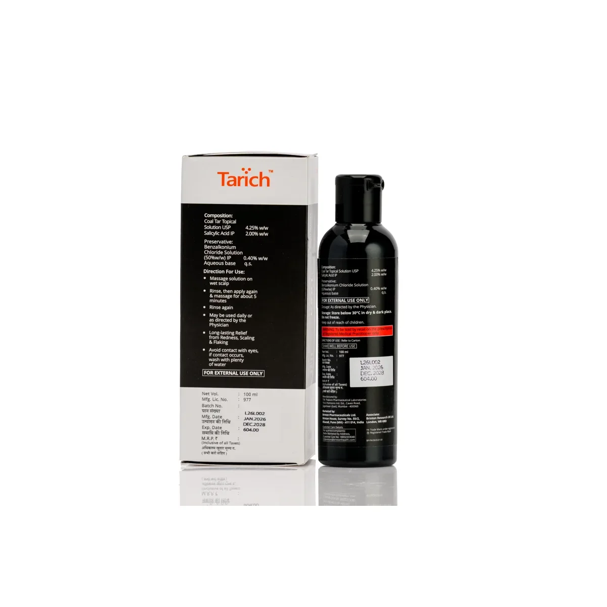 Coal Tar Topical Solution IP 4.25% w/v, Salicylic Acid IP 2.00% w/v. Preservative: Benzalkonium Chloride Solution 0.40% w/v, Aqueous Base Q.S.